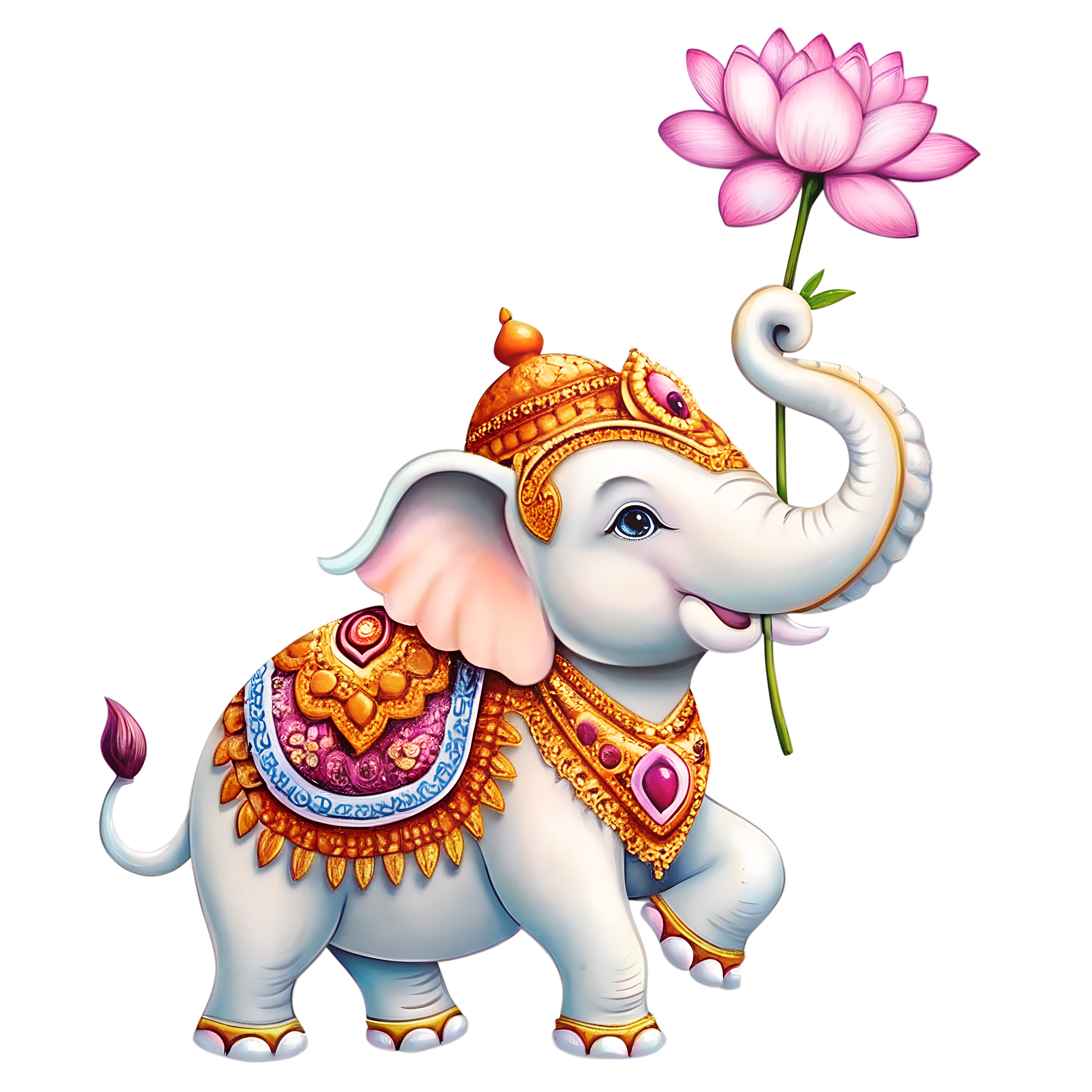 This charmingly created Royal Wedding Elephant PNG is an adorably decorated white elephant holding a pink lotus flower, which is a symbol of purity, royalty, and giving of blessings. The elephant is covered with luxurious jewels, colorful embroidery, and royal ornaments, thus it is perfect for grand celebrations, cultural events, and traditional wedding designing. The transparent background makes this PNG image a very handy tool for both digital and print works without the need for background removal manually. This royal wedding elephant PNG with vibrant colors and top-notch details can be a part of the invitation cards, ceremony welcome boards, banners, thumbnails, posters, WhatsApp wedding greetings, and traditional graphic templates. Its royal charm is a great visual that can grab the attention of the audience of Hindu, Buddhist, and Indian-style destination weddings. The lotus flower is an addition to the spiritual realm, it is a representation of the divine and positive beginnings.