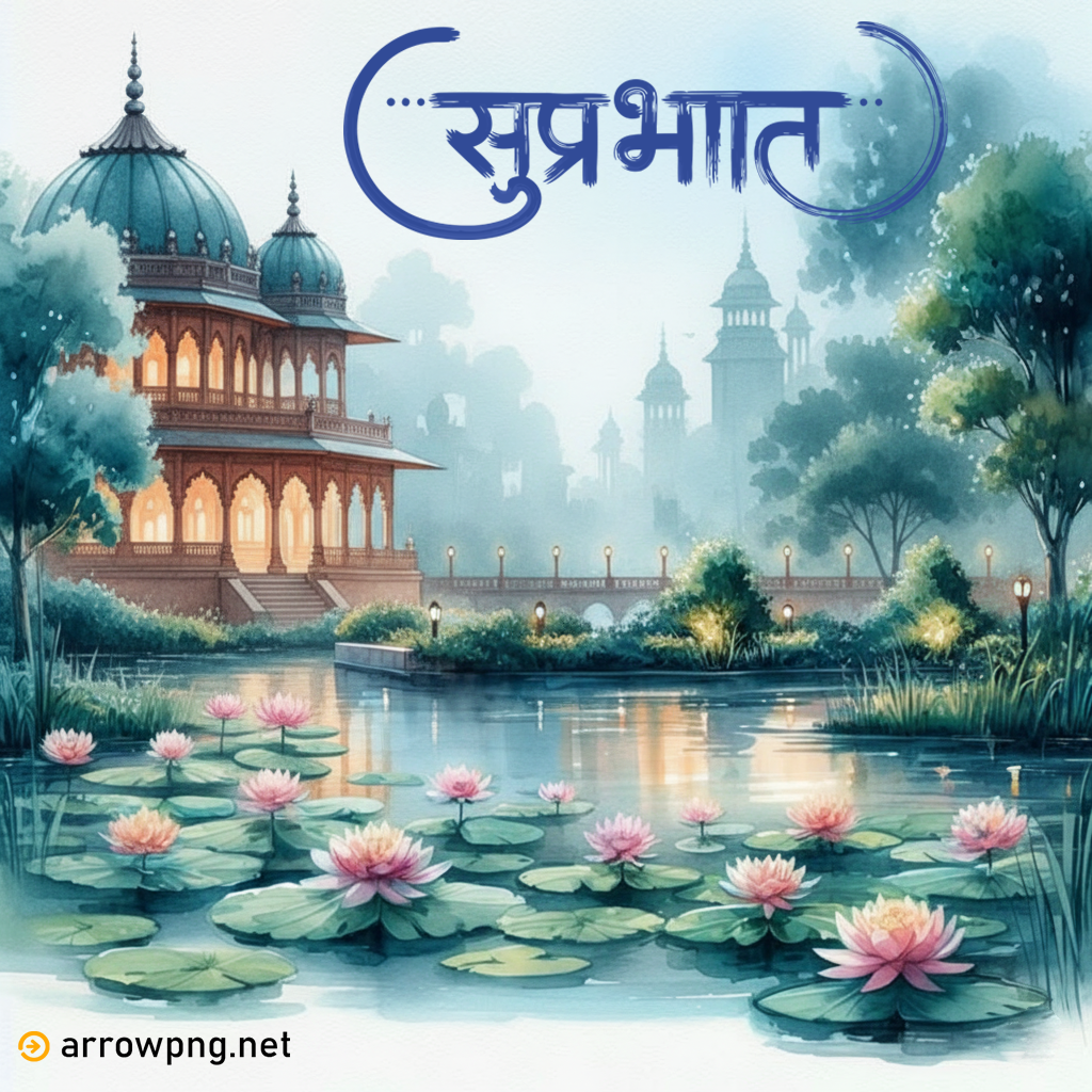 The calming energy of this Suprabhat Image has the power to bring a smile on anyone’s face firstly to their morning. The lotuses stand for purity and new life, and at the same time, the temple adds a spiritual touch that is the source of more positivity and mindfulness. A person searching for a beautiful background, daily motivation in the form of a post, or simply a morning greeting can’t go wrong in any of these ways as the image does all three beautifully.